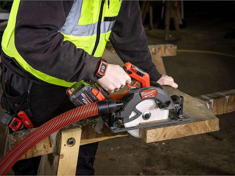 - Die M18 FUEL™-Kreissäge liefert die Leistung für den Trennschnitt und hält die 6.000 U/min während des gesamten Schnittes aufrecht, was dank der in dieser Säge eingebauten FORGE™-Technologie zu einem schnelleren Schnitterlebnis führt – mit der Fähigkeit, mit einer 12,0-Ah-Akkuladung bis zu 700 Stück 90 mm x 45 mm große Kiefernstangen oder 64 laufende Meter 42 mm dicke Kiefernplatten zu schneiden